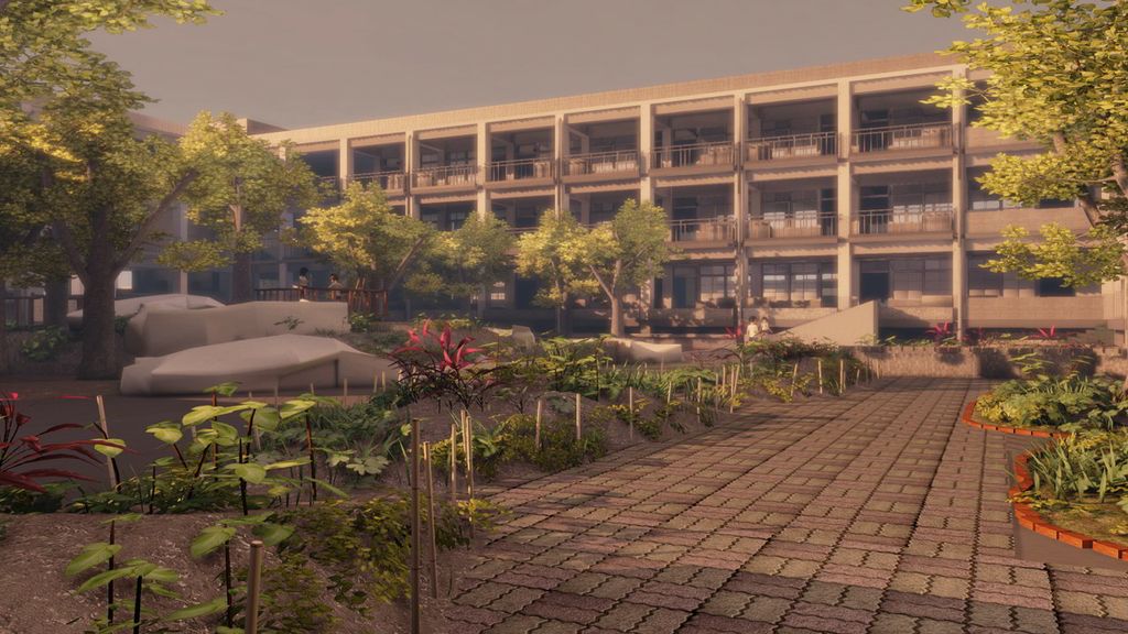 場景的部分就是我負責的。一開始我就想走寫實風,所以材質上有特別研究過。甚至跑回以前就讀的小學拍照參考。我想呈現的就是放學後的感覺。